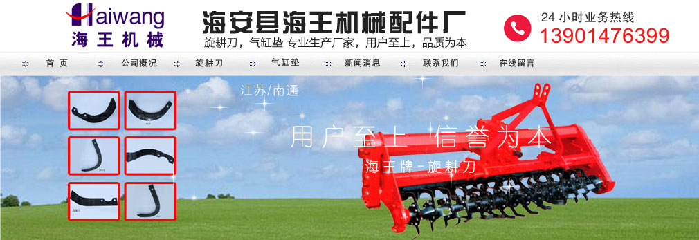 (江蘇省) 海安縣海王機械配件廠,我廠位于江蘇省南通市海安市,企業專生產:旋耕刀(旋耕刀片,旋耕機刀片),氣缸墊(柴油機、汽車發動機氣缸墊,進排氣墊)、同時生產各種規格的機油管,柴油管,回油管,輸油管,氣缸墊模具,塑料、橡膠模具,冷沖壓拉伸模具等。